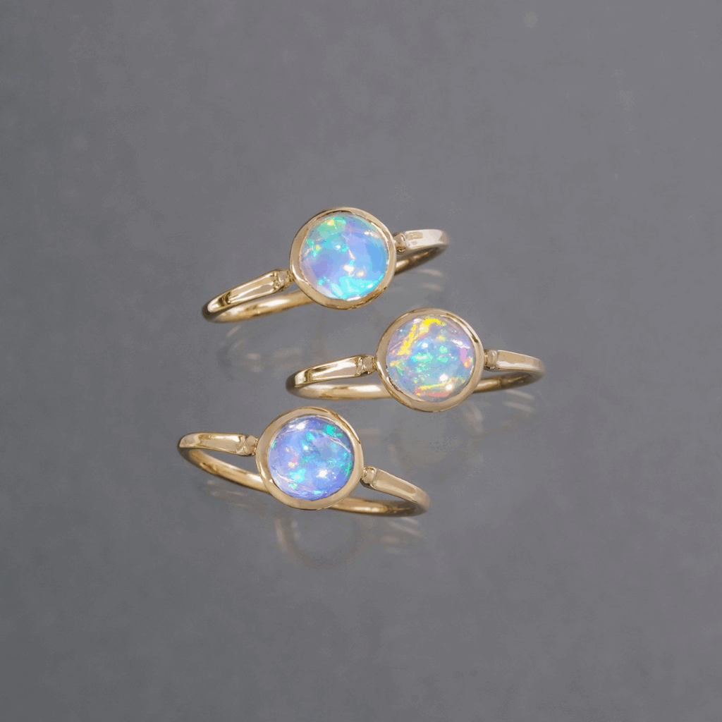 澄んだ光のなかに、夢のようなブルーグリーン、オレンジの遊色が浮かび上がるエチオピア産のウォーターオパール。まるで光が戯れるように幻想的な輝きを宿す美しいカボションカットの柔らかなフォルムを、繊細な覆輪(ふくりん)留めで包み込み、石本来の透明感と奥行きを引き立てるようなデザインのリングです。一見するとシンプルなリングに見えますが、アーム(腕)は細部にまで熟考を重ねられ、余計な装飾をそぎ落とした中に確かな存在感と気品が漂うよう、美しく洗練されたフォルムとなるよう仕上げられています。指元に上品な彩りが添えられ、さりげない存在感で持ち主の目を楽しませてくれるでしょう。目覚めの鐘を打ち鳴らし、目の前に広がる無限の可能性に気づかせてくれるウォーターオパール。その心にあるものは純粋で、愛を起因としているものだと全肯定してくれます。あるがままのあなたでいることを許可するこの石は人生で初めて味わう喜びとなるかもしれません。