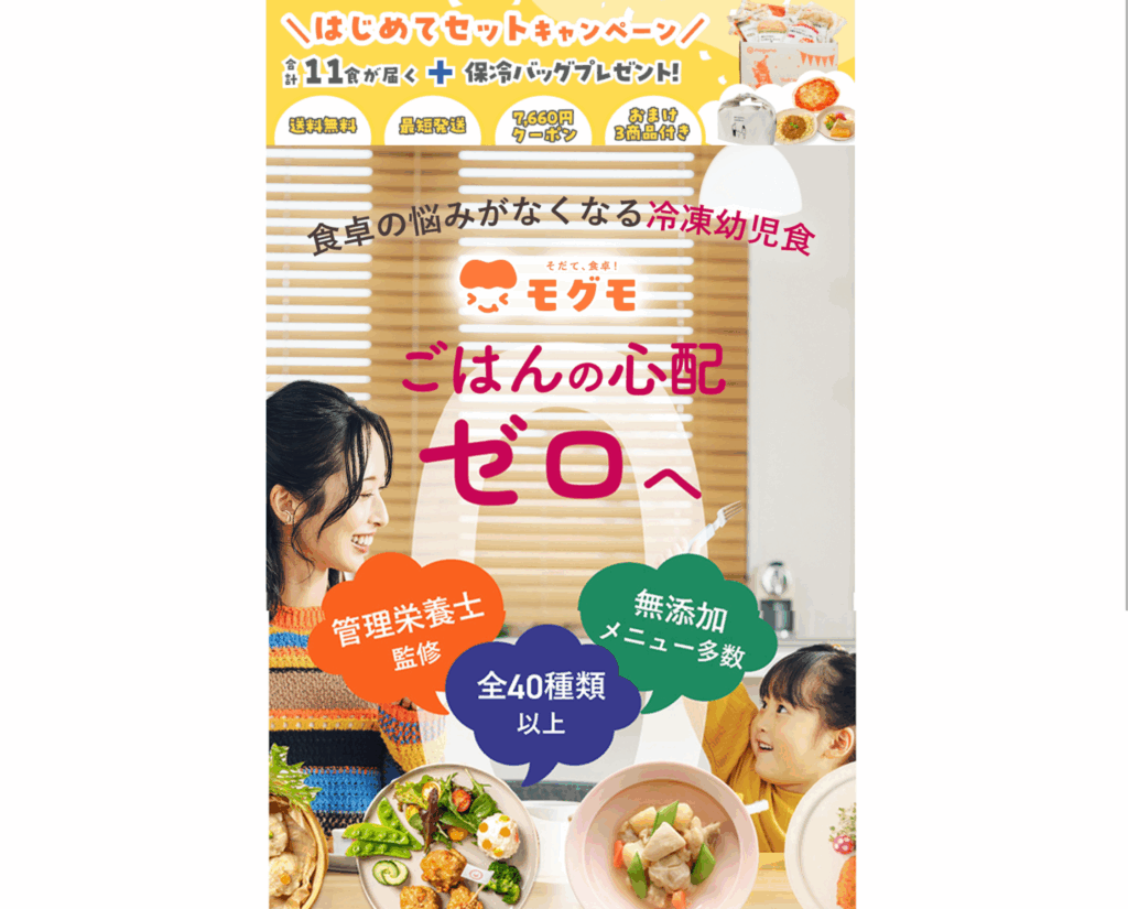 お子さまが1つも食べなかったら開封済みでも商品発送から20日以内であれば全額返金してくれます。オリジナルの保冷バッグのプレゼント付き!2回目からは40種類のメニューの中からお好きなものを選べます。